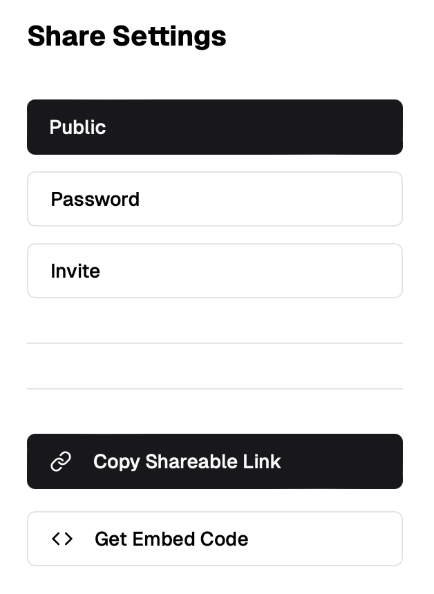 Set access rules for your forms. Share them publically, password protected, or with invites only.